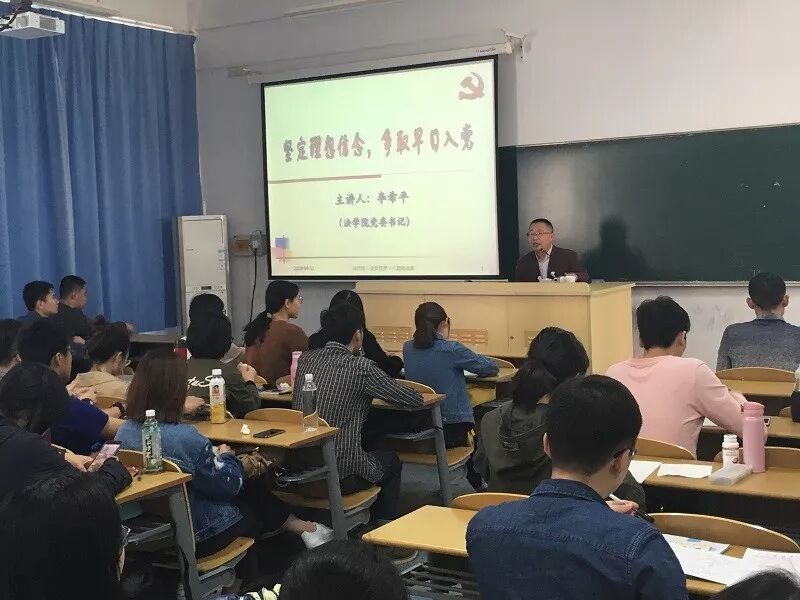 4月11日下午,法学院党委书记李希平为法学院第十八期二级党校的学员们做了题为“坚定理想信念,争取早日入党”的主题报告。