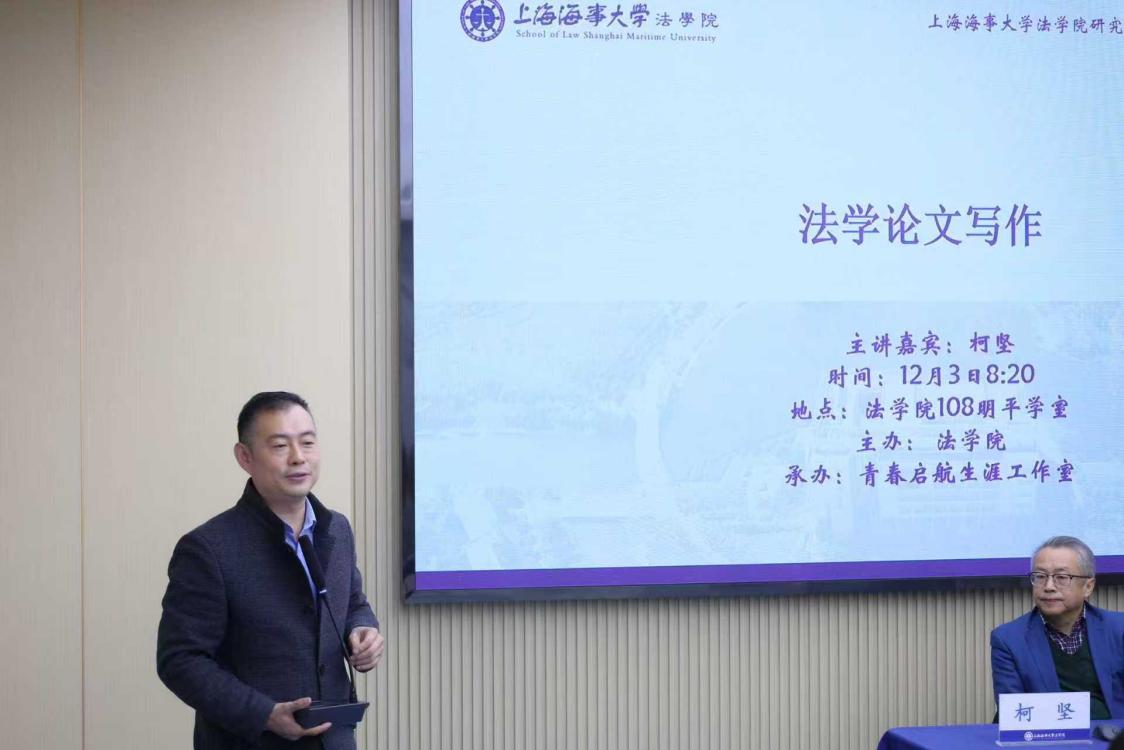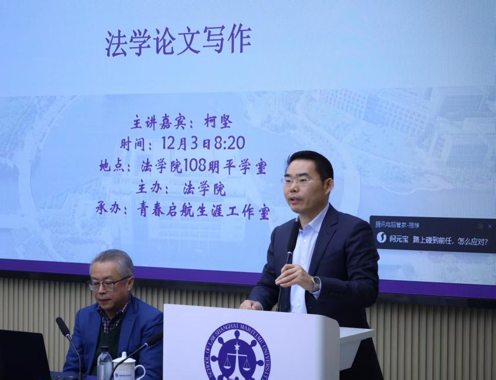 讲座伊始,柯坚教授结合当前法学研究的发展趋势与发表环境,指出法学研究应坚持以问题为导向,紧密贴合国家重大战略与社会需求。他强调,在“双碳”目标、海洋强国、生态文明建设等国家战略背景下,法学研究尤其是海洋法学、环境资源法学等领域具有广阔的发展前景,但也面临发表渠道窄、读者群体有限等现实挑战。