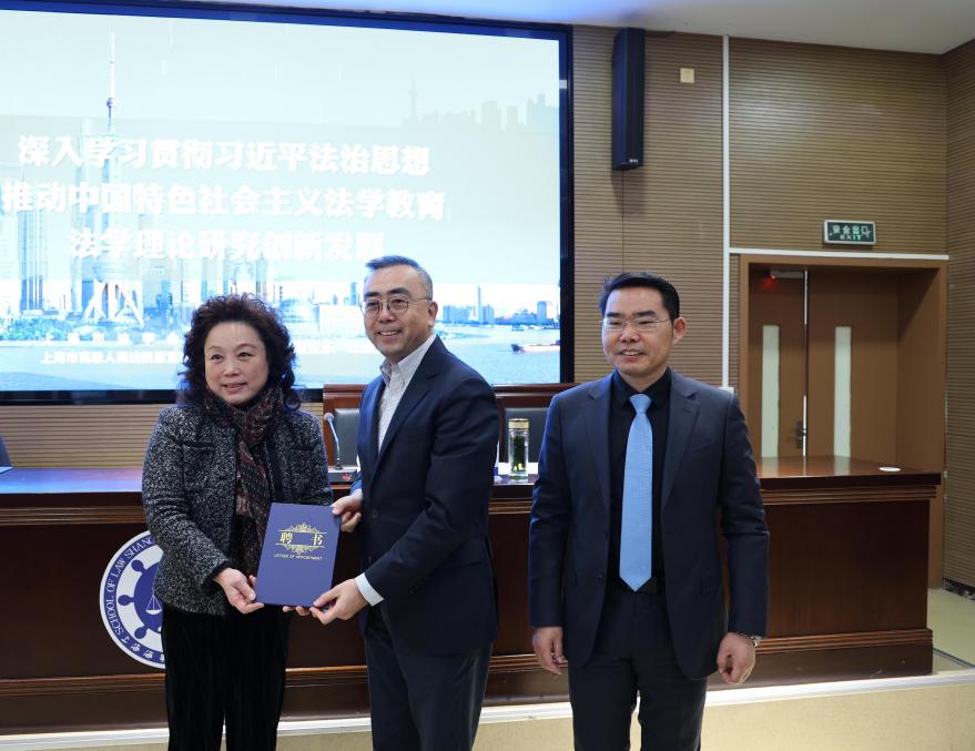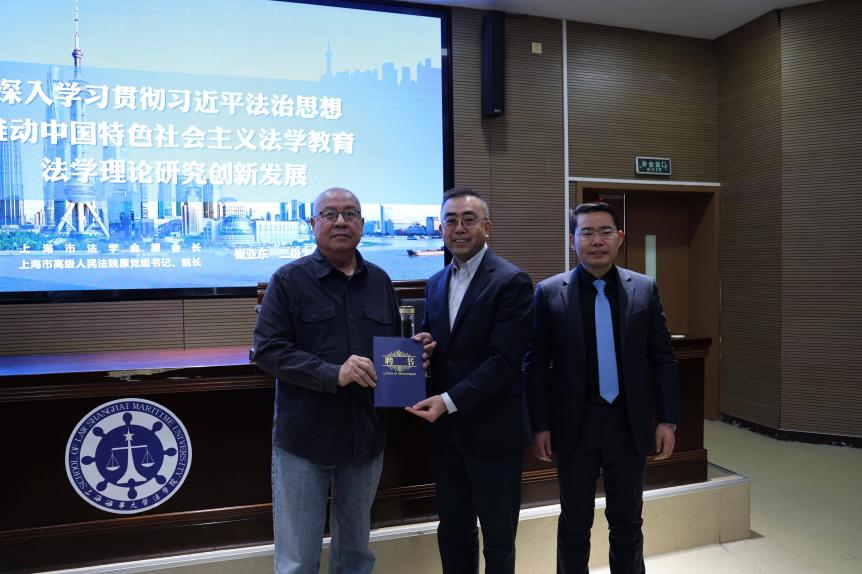 讲座开始前,上海海事大学党委副书记、纪委书记严大龙致辞,他对崔亚东院长及随行专家一行的到来表示热烈欢迎,并代表法学院为崔亚东、刘学尧(上海大学教授,上海政法学院人工智能法学院专家委员会主任)、生键红(上海市政协经济和金融委员会参事)颁发法学院客座教授聘书,以进一步深化双方在法学教育与研究领域的交流与合作。