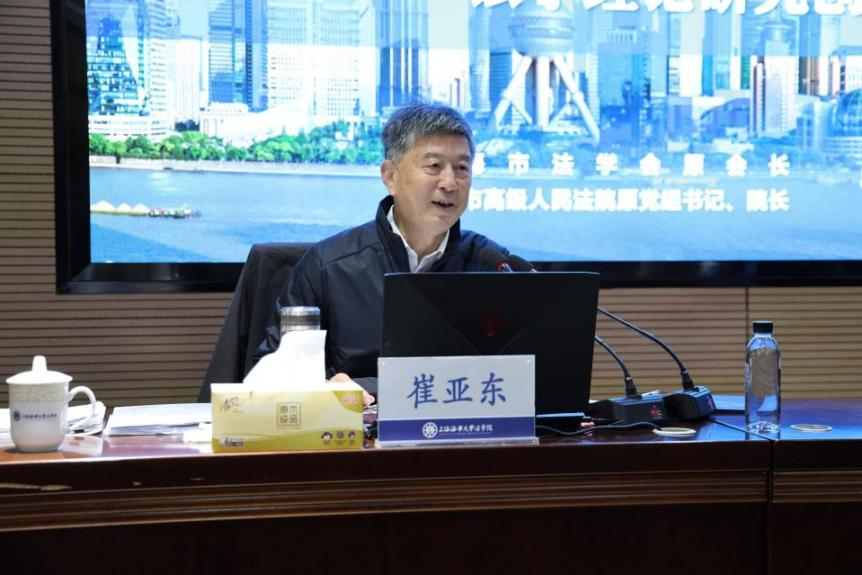 当日,崔亚东院长受邀为学校师生作了题为“深入学习贯彻习近平法治思想 加快法学人才培养”的专题讲座。讲座由国际海洋治理研究院院长杨华教授主持,校党委副书记、纪委书记严大龙出席,法学院及马克思主义学院约150名师生参加。